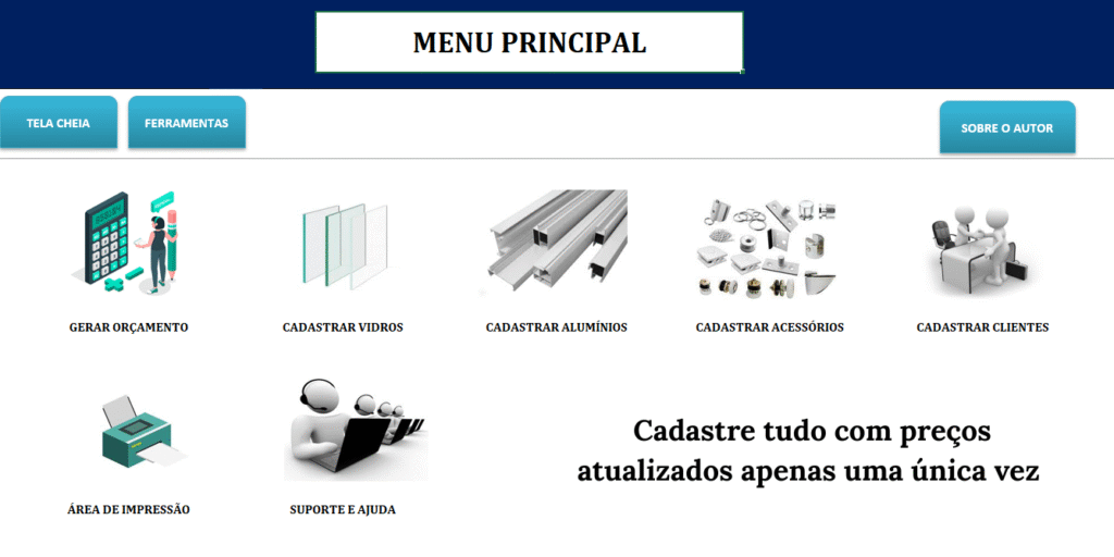 Você só precisa de uma ferramenta simples, completa e inteligente, criada especialmente pra quem trabalha com vidro, alumínio e esquadrias.